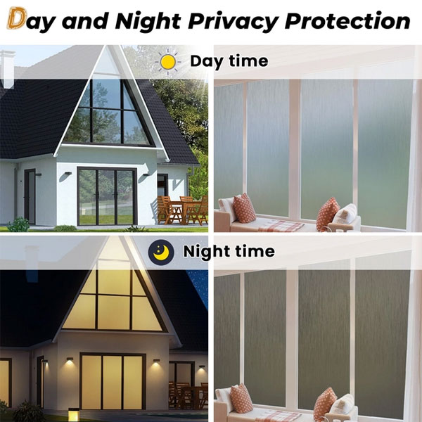 Frosted Privacy Window Film, Rainsilk Pattern, Anti-UV, Static Cling, 75x200cm, Grey