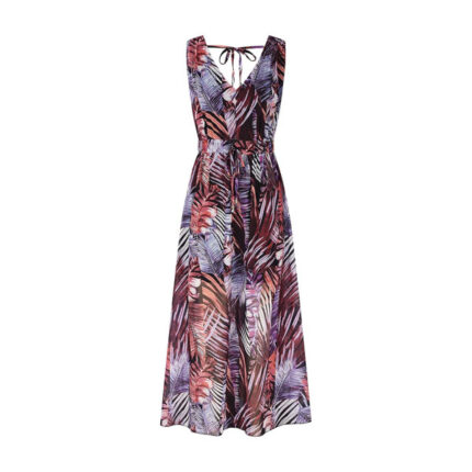 Floral Maxi Dress Sleeveless V Neck Long Boho Beach Dress – Orange S