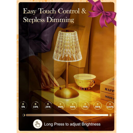 Flower Lamp Cute Crystal Dimmable Small Table Lamp, 3 Colors Touch, Rechargeable Cordless, Vintage Decor, Gifts for Women