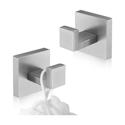 LZYDKH 2 Pcs Square Bathroom Towel Hook, Stainless Steel Coat Hooks Wall Mounted Towel Hooks for Bathrooms Heavy Duty Self Adhesive for Bathroom Kitchen Hotel (Silver)