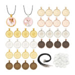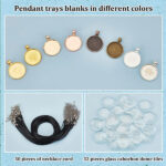 AHANDMAKER Pendant Trays Kit, Bezel Pendant Trays Charm Bulk with 32Pcs Round Alloy Pendant Cabochon Settings 32Pcs Clear Glass Cabochons 30Pcs Waxed Cotton Cord, Charm Kit for Necklace Jewelry Making