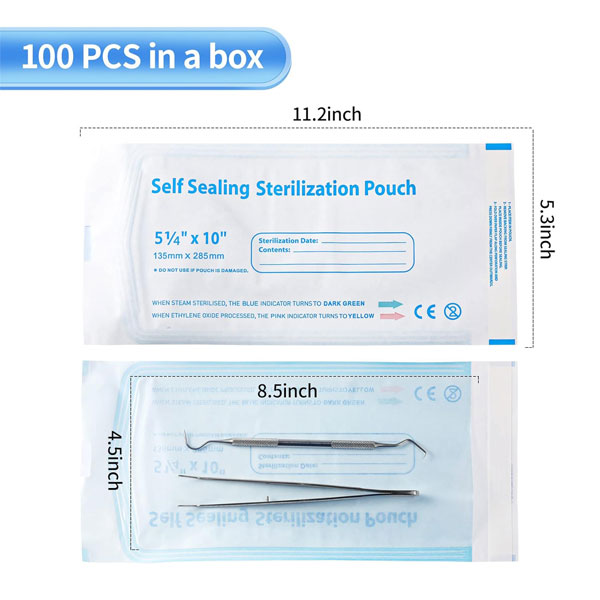 Annhua 5.3 x 11″ Self-Sterilization Pouches 100 PCS Self Seal Sterilizer Bags, Used for Dentist Tools, Beauty Toolkits and Nail Tools