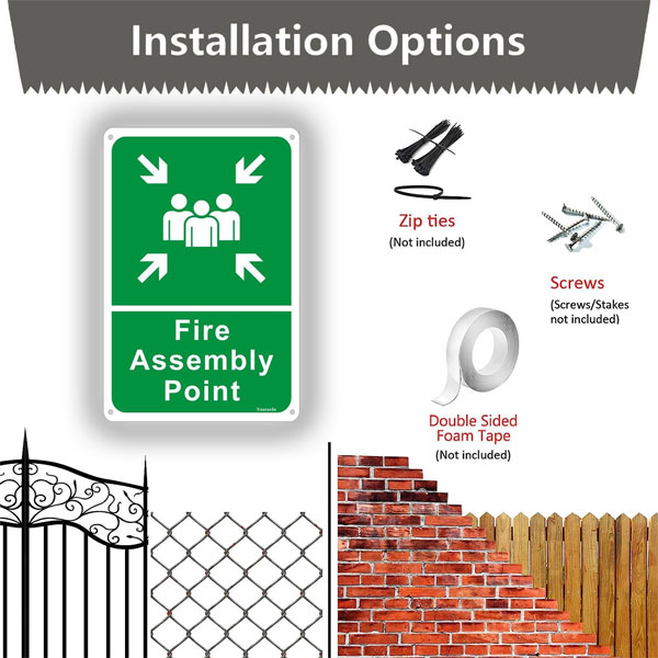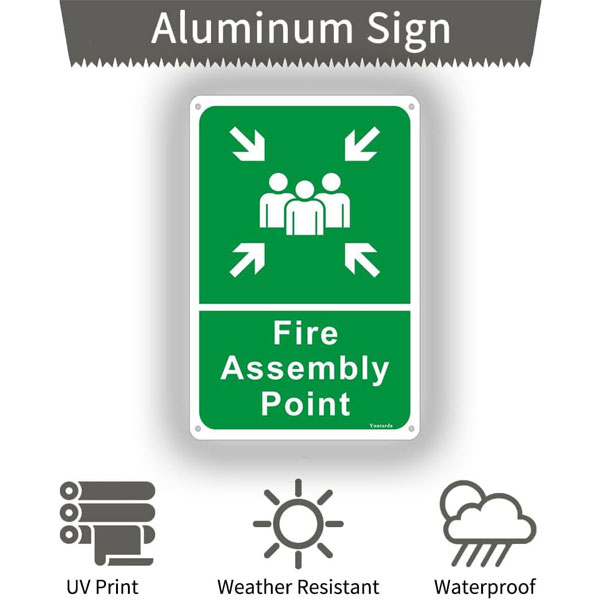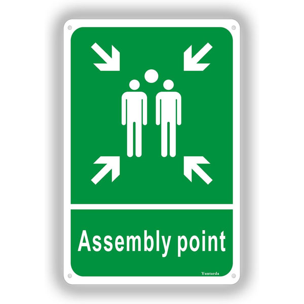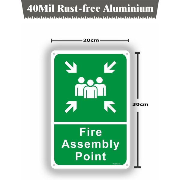 Assembly Point Sign,Yuntarda 30x20cm Fire Action Safety Sign