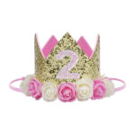 - ♛【Adorable Birthday Gift】: Baby birthday crown pink and gold glitter with a baby birthday crown crystal hat felt lining inside and floral design on the outside, Baby crown suit for a baby’s birthday, party, take photos or daily life gift.