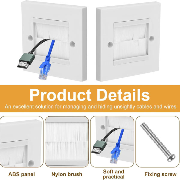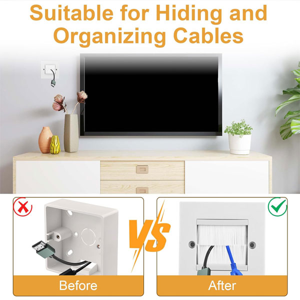 - Material – The brush wall plate is made of good quality bristles and plastic material, lightweight and good durability, smooth surface, soft and dense bristles, there are no exposed gaps, which can hide and protect the cable well and maintain a beautiful appearance.