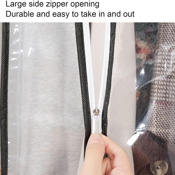 - 【Side Zipper】Heavy duty side metal zipper is smooth opening and closing, you can get what you want without taking out all your clothes. Perfect for hanging clothes storage bag users who need to grab their favorite suit or dress in a hurry
