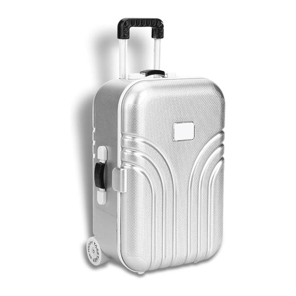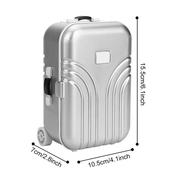 Dolls Travel Suitcase, Mini Size Trolley Case with Open and Close Carry On Luggage Simulation Rolling Suitcase Toy(Silver)