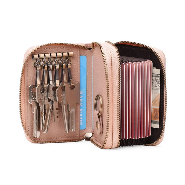 - High-quality Leather Card Holder for Women: The wallet is made of soft premium quality PU leather fabric with a durable vintage brass two-snap button, smooth zipper, and a removable keychain. Soft to the touch, portable, and durable.