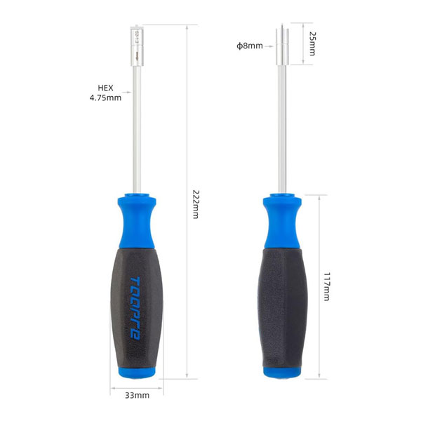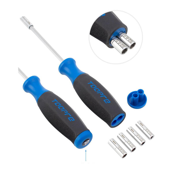 - 【5 interchangeable attachments】 Includes 1.3 mm flat head, 3.5 mm square, 4.8 mm hexagon, 5.5 mm hexagon and 6.0 mm hexagon – for all common spoke nipple sizes.