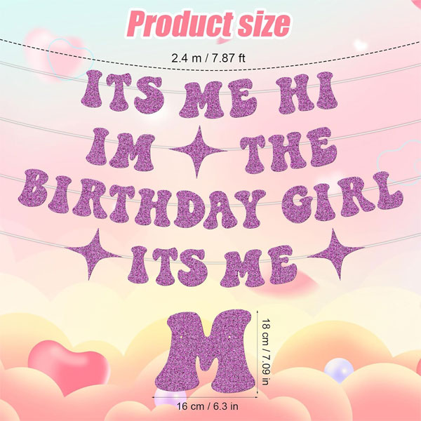 - Product Includes: You will receive 1 set of birthday banners, including 29 letter cards that can combined into “ITS ME HI IM THE BIRTHDAY GIRL ITS ME”, 3 star cards, and 4 ribbons. The glitter sparkles under the lights, suitable for birthday parties, creating a dreamy scene.