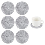 Kasoud Silver Coasters, 6PCS Coaster, Hollowed-Out Round Cup Coaster, Table Decorative Non-slip Drinks Coasters, Wheat Spike Coasters, Insulation Pads Mats, Coffee Table Decor (Silver)