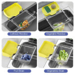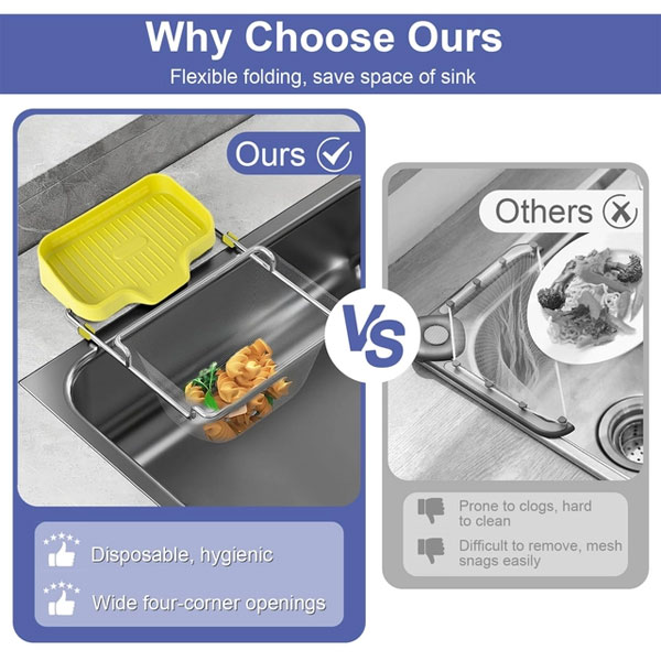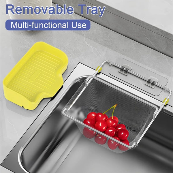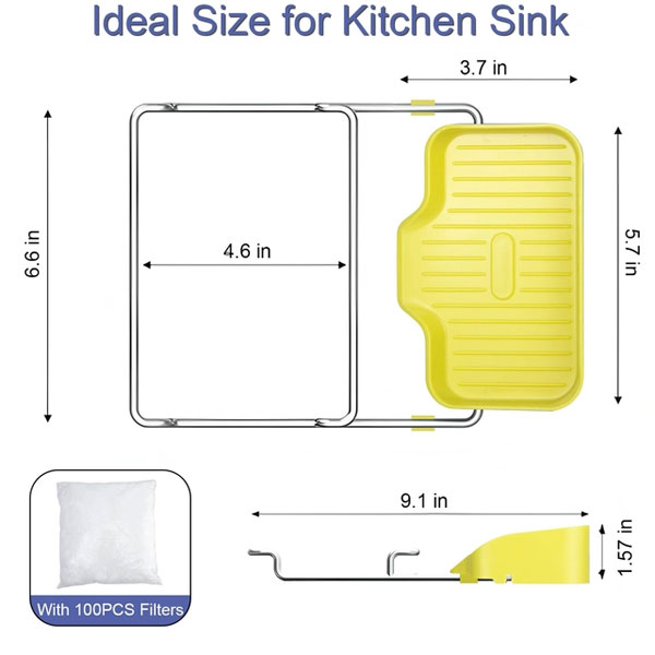Kitchen Sink Strainer, Foldable Food Catcher, Mesh Waste Filter Rack with Detachable Tray, Corner Sink Drain Basket Hanging Dishcloth Holder with 50PCS Filter Mesh Bags (Yellow)
