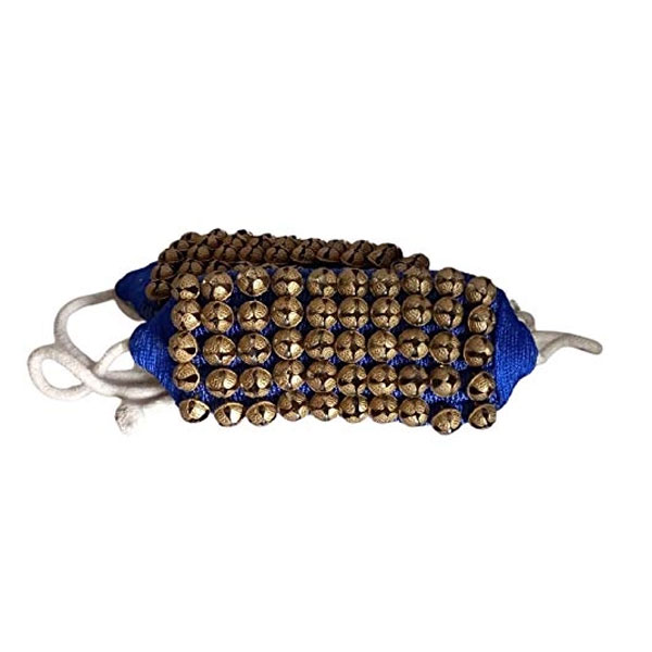 KVR Kathak Bharatnatayam indian traditional dance anklets brass bells ghungroo pair tied over velvet pad for comfortable performance (5 row of bell, Blue-1)