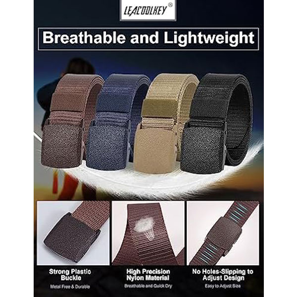 - QUALITY NYLON BELT– Premium nylon webbing, lightweight, soft, breathable,flexible, sturdy and durable, sweat absorption and dry fast. Compare with the leather belt, the nylon belt won’t be cracked and aged after long times using.
