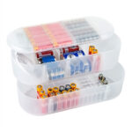 Linkidea 3 Layer Battery Storage Case Holder with Electric Quantity Detection, Portable Organizer for AA, AAA, Button Cells (White)