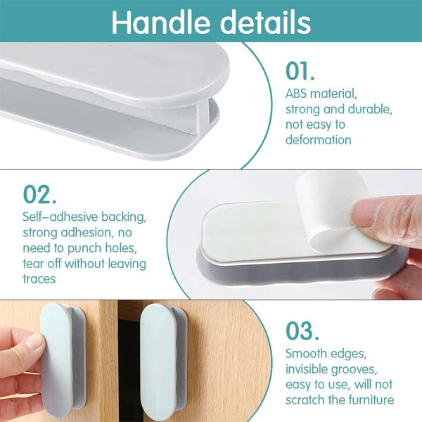 - [High-Quality Material] – The self-adhesive door handle is made of high-quality PP plastic, which is lightweight and portable, not easy to age, strong and durable. Smooth edges and surfaces won’t scratch furniture or hurt your hands. You can use it with confidence