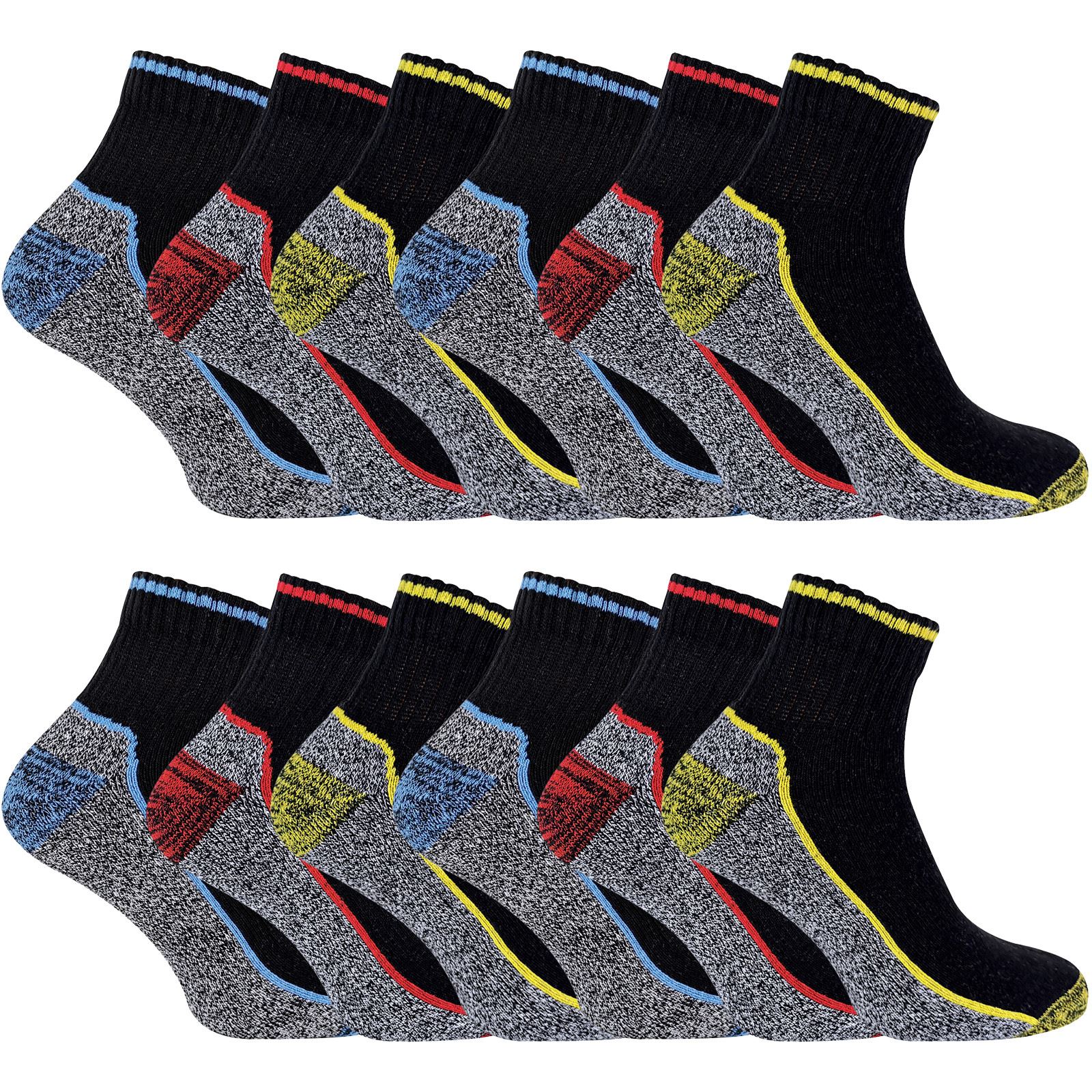 Short Bamboo Work SocksIf you need a pair of work socks that offer maximum breathability during hot weather for the summer months then consider our quarter bamboo work socks. With all the features of our original bamboo work socks including a cushioned foot, reinforced heel and toe and high bamboo viscose content.These ankle work socks made with bamboo are perfect for increasing breathability. The shorter length gives the expoure that your legs need during the hot weather, the high bamboo content allows for the socks to wick moisture away from your feet and legs efficiently. Bamboo as a fibre is know for its anti odour properties, great for keeping your feet sweat free whilt providing a super soft comfortable sock for its wearer. This doesn’t make the sock less durable either, the thick cushioning throughout the sock and the reinforced heel & toe ensures this.There are 3 sizes to choose between in these quarter bamboo work socks with three colour options in the pack.They are avaliable in 3, 6 and 12 pair bundles and they are machine washable.