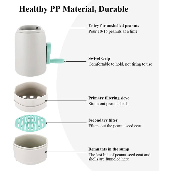 - Effortless Peanut Shelling: The Automatic Peanut Sheller makes quick work of raw or cooked peanuts, eliminating the need for manual shelling. This peanut cracker tool offers smooth operation, perfect for anyone tired of using a hand crank peanut sheller.