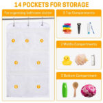 - 12.2” W x 20“ H, hanging shower caddy easy to carry, include 2 big pockets hold bath 340oz/1000ml conditioner shampoo soap, large capacity shower caddy are big enough to hold the family size bottle