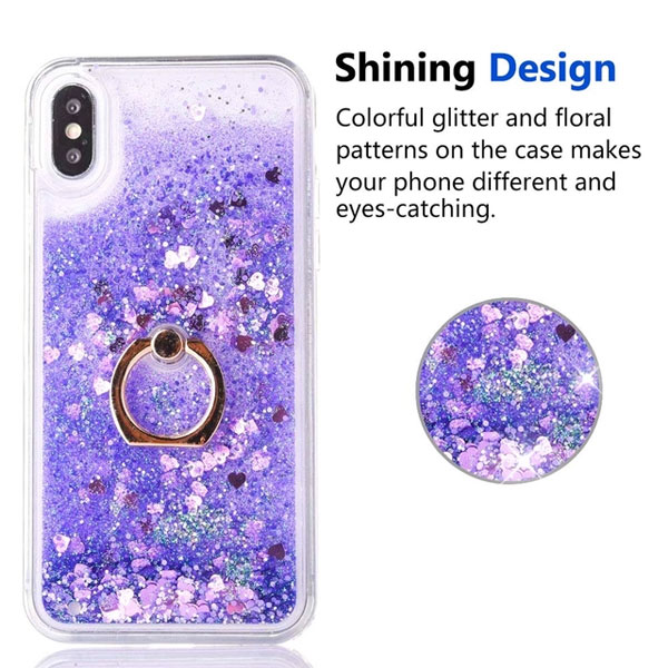 Mo-Somnus For iPhone XS Max Case Glitter [Free Tempered Glass Screen Protector], Flowing Liquid Floating Bling Shiny Sparkle Glitter Case Cover For iPhone XS Max 6.5″ (Purple)