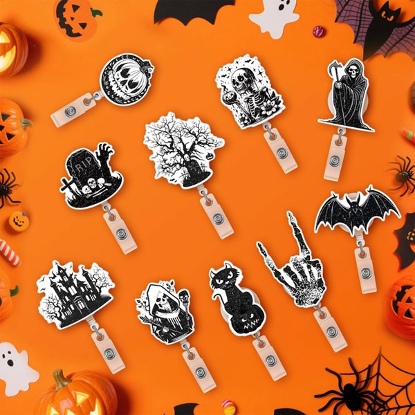 - Badge Reels Package:You will be presented with 10 pack different patterns of Halloween retractable id badge holder with swivel alligator clip
