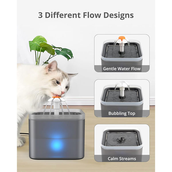 - 3 Drinking Modes: Removable water outlet is designed to offer 3 different water flow settings (gentle flow, bubbling top or calm stream) for pets to choose from, keep they have strong interest in fresh flowing water to drink more.