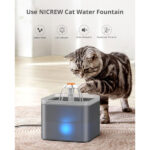 NICREW Cat Water Fountain, Cat Fountain with LED Light and Activated Carbon Filter, 2L Pet Water Fountain Cat Bowl, Gray