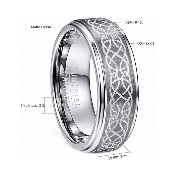NUNCAD 8mm Polished Finish Step Edge Celtic Tungsten Ring Wedding Band Brushed Center Comfort Fit Size Z+1.5