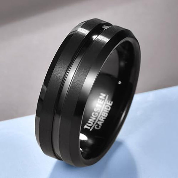 NUNCAD Men’s Rings Black 8mm Tungsten Wedding Ring for Men Simple Band Ring with Groove Beveled Edges Size S