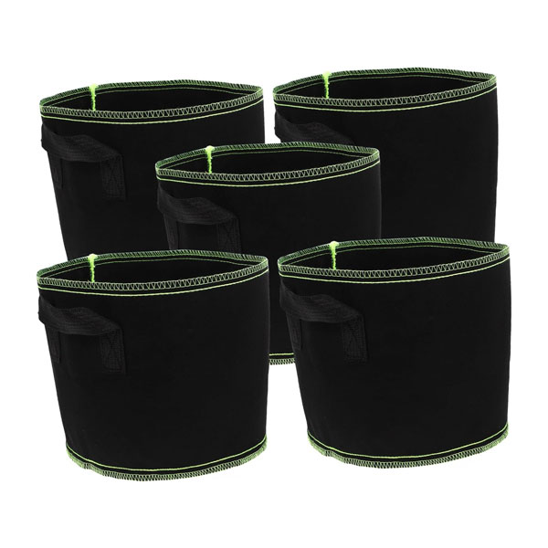 Onezebra 5-Pack 3 Gallon Grow Bags, Black, Grow Bags for Vegetables, Flowers, Herbs, Indoor/Outdoor Use, 22 cm (W) x 22 cm (L) x 25 cm (H)