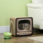● Vintage TV shape adds a nostalgic touch ● Included catnip enhances your cat’s overall wellbeing ● Made from safe corrugated cardboard ● Functions as both a scratching post and cosy house ● Suitable for cats weighing under 3kg only ● Easy assembly required ● Colour: Brown ● Material: Corrugated cardboard ● Overall Dimensions: 39L x 29W x 37Hcm ● Inner Space: 33L x 28.4W x 31Hcm ● Door: 26W x 20Hcm ● Item Label: D30-794V00BN