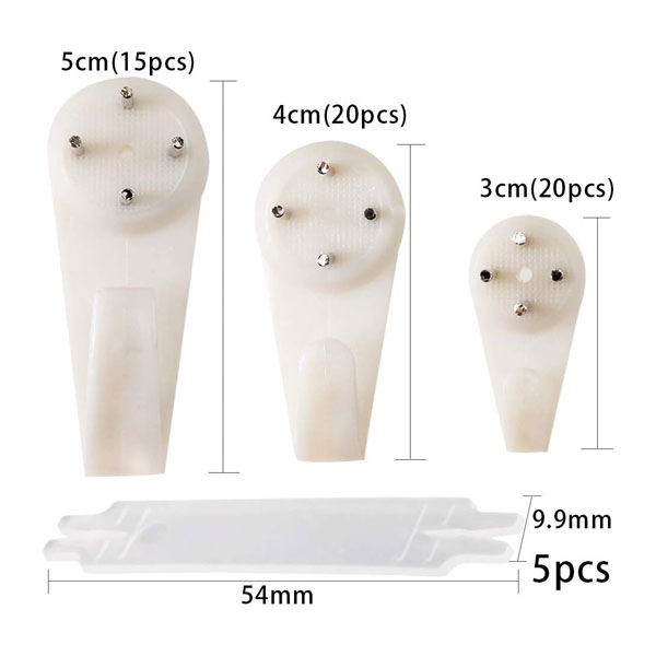 - [Package include] Picture hangers comes with 20 pack 3cm hardwall picture hooks,20 pack 4cm hardwall picture hooks,15 pack 5cm hardwall picture hooks and 5 pack hook handrail.