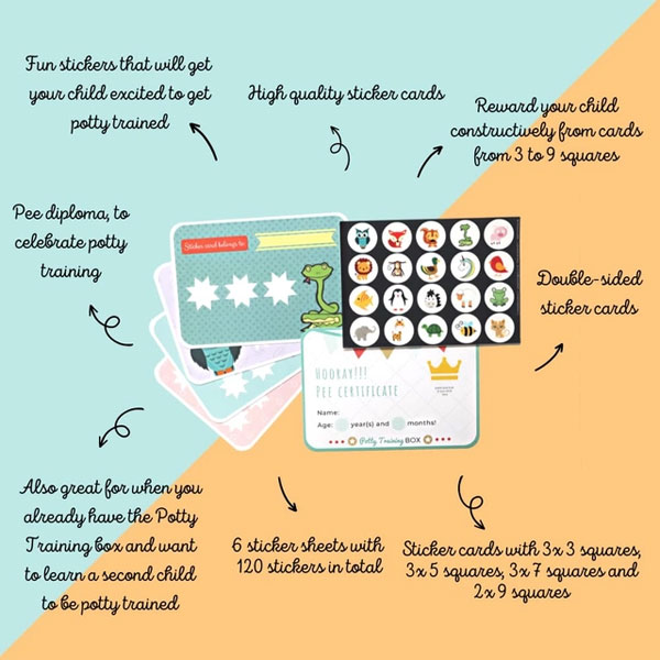 Potty Training Reward Charts (20 English Sticker Charts, 120 Fun Animal Stickers and Pee Certificate) – Toilet Training Reward Chart for Toddlers, Designed for Both Boys and Girls