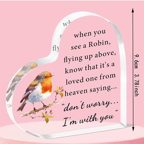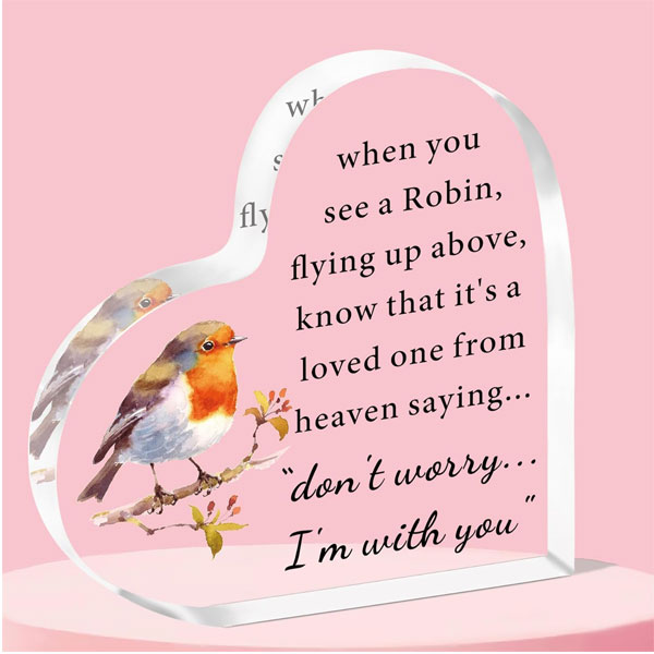 Robin Memorial Hearts Acrylic Plaque – Remember Lost Loved Ones with this Gift
