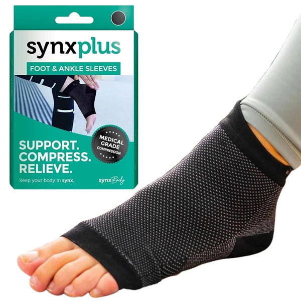 - FOOT AND ANKLE COMPRESSION SLEEVE – Our SynxPlus foot and ankle compression sleeves help stabilize and prevent foot injuries without restricting your everyday motion. Keep your body in synx with our ankle sleeve compression support.