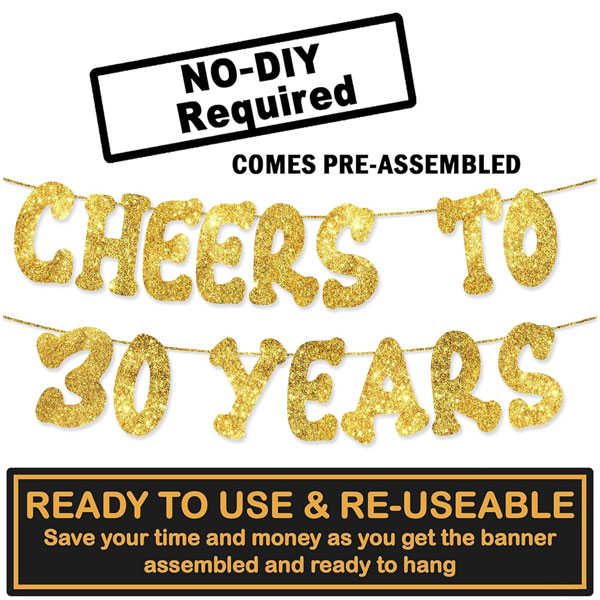 - VIBRANT COLOR | PREMIUM QUALITY : Stunning happy birthday letter banner Gold has a beautiful font that spells out “Cheers to (milestone) Years” in a bold and eye-catching design. Each letter is made from high-quality material making it a perfect decor for an eventful year. Our banners Gold is guaranteed to stay together throughout the party, making it a best decor for Gold birthday decorations. Embrace Gold party decorations for girls.