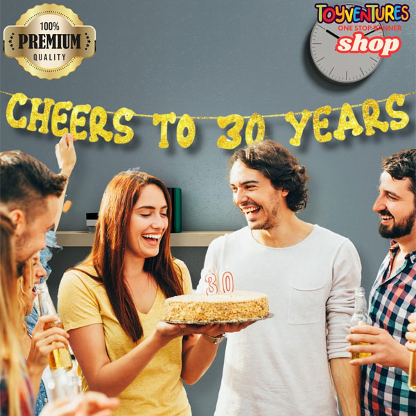 TOYVENTURES 30th Birthday Gold Glitter Banner Decorations – 8 Feet