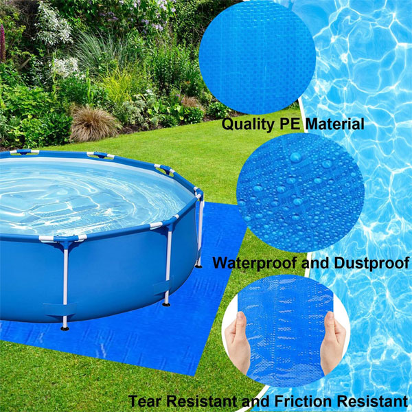 - Pool ground cloth is constructed from PE waterproof material, ensuring safety and durability. It effectively safeguards your above ground pool against potential damage, thereby extending the lifespan of the swimming pool.