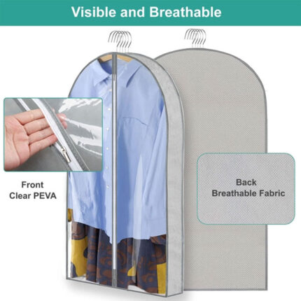 ZSURLUX Garment Bags for Clothes 60 x 100cm 2Pack, Moth Proof Clothes Covers with Zip, Hanging Storage Protector Bags for Wardrobe, Travel, Suitable for Suit, Coat, Jackets, Jumpers,etc. Grey